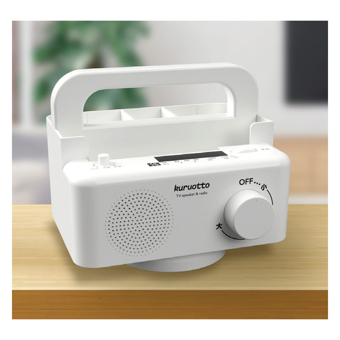 テレビの音を近くで楽しめ、ラジオも聞ける。回転する小物ラックにもなります。