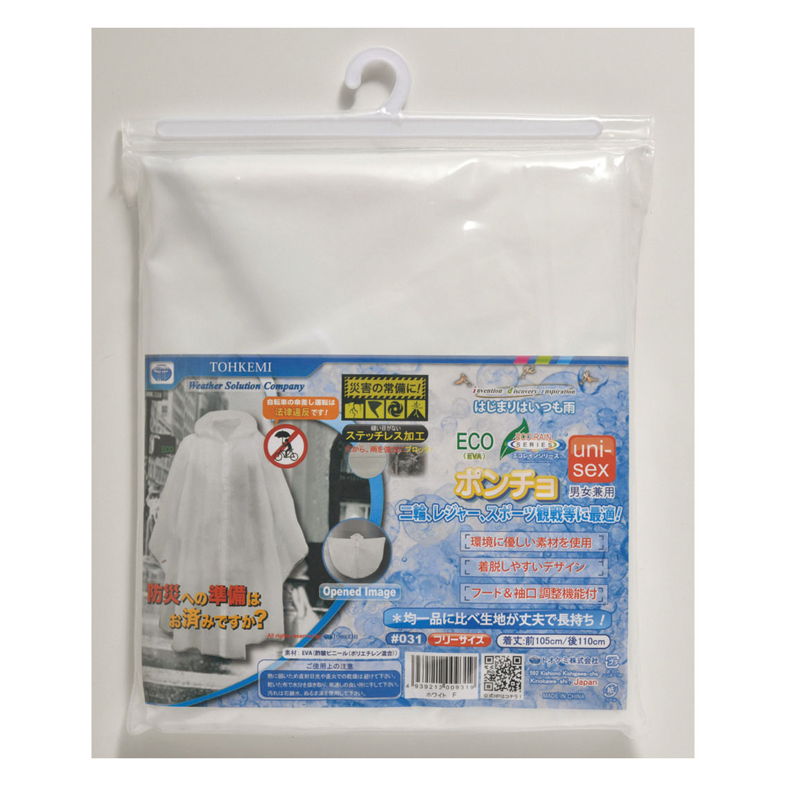 環境にやさしい素材(EVA)を使用した、レインポンチョ。災害時の常備品として。