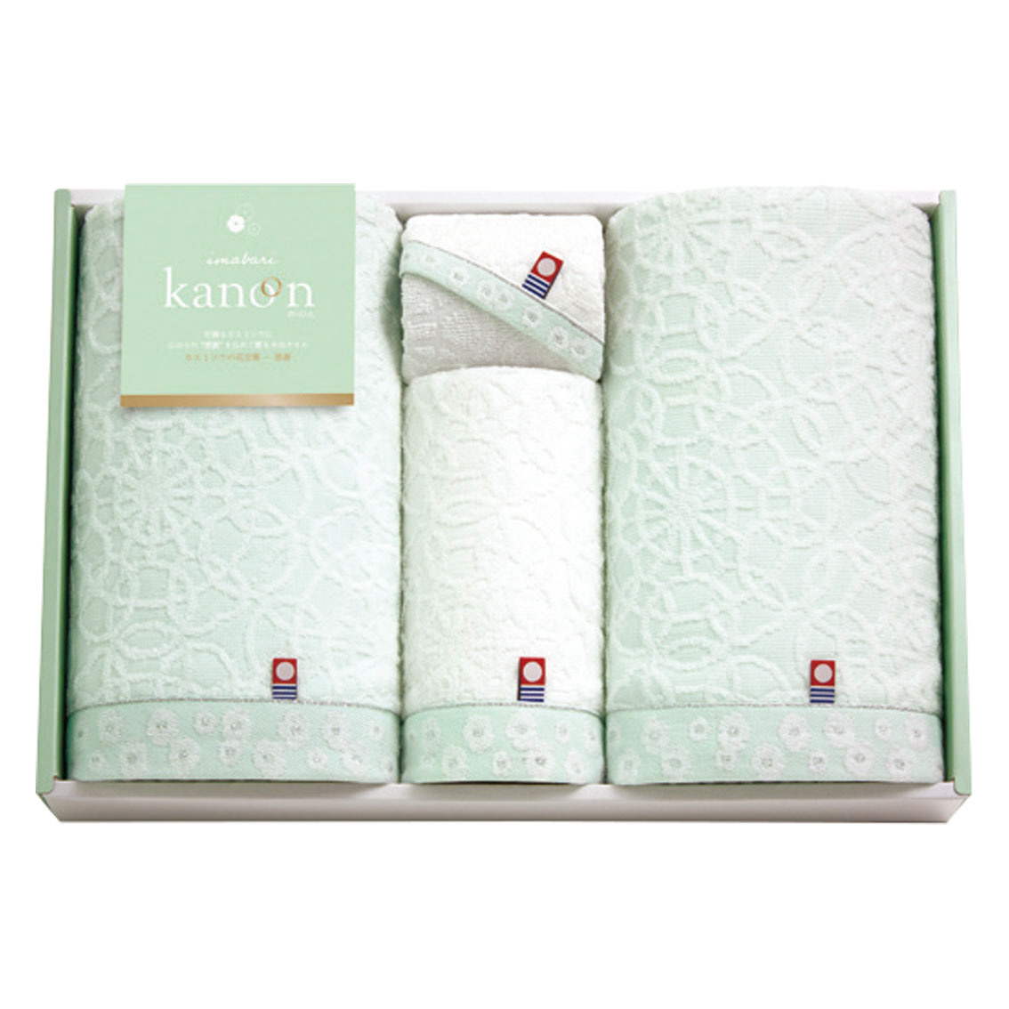 フェミニンなかわいらしさが溢れる優しい今治タオルに心からの感謝を込めたカスミソウのあしらいを添えて カスミソウモチーフを繊細に織り上げた心地良い今治タオルが暮らしを奏でるホワイトシルバーと爽やかなミントグリーンのやさしいハーモニー