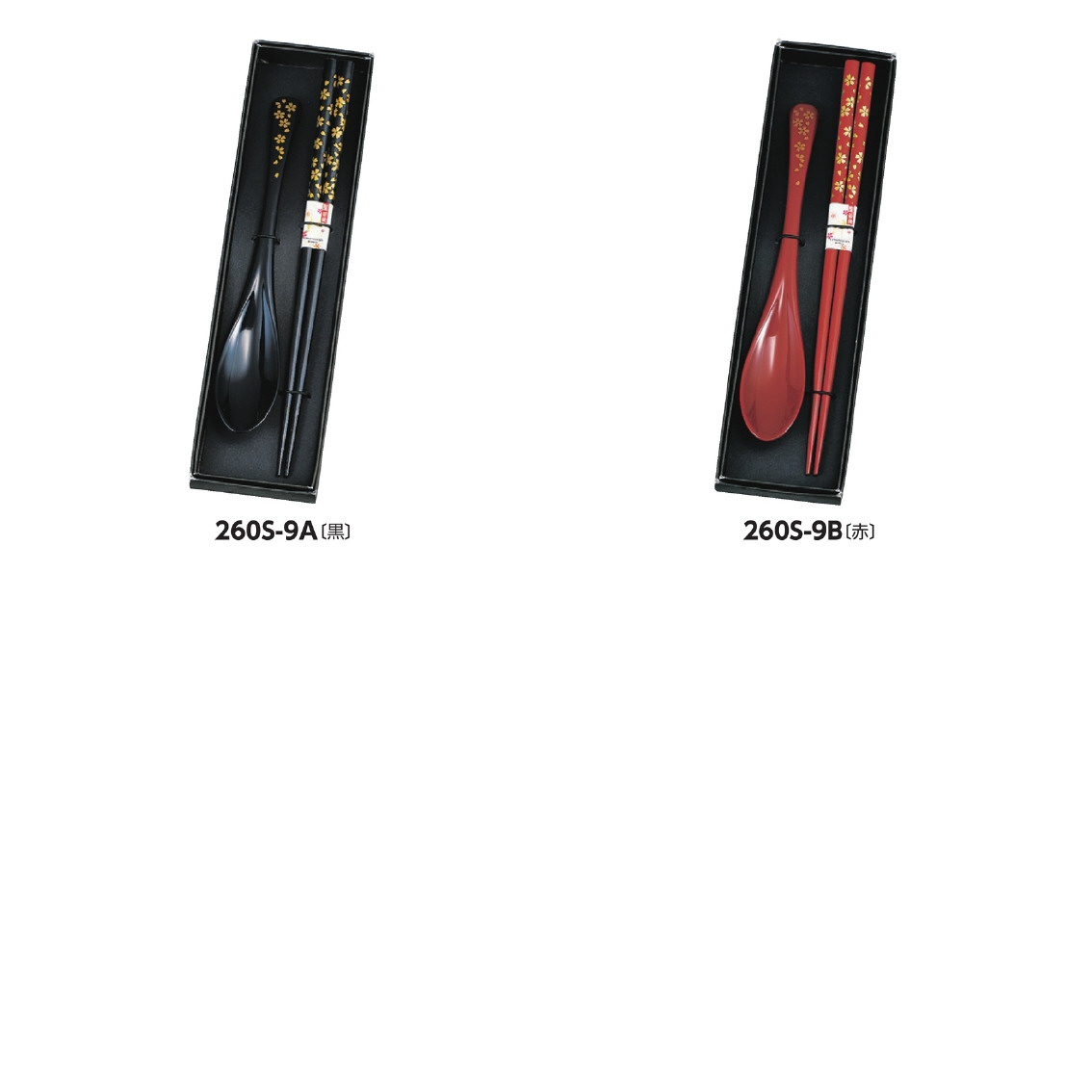 シックな本体に金色の桜が映える、箸とスプーンのセットです。