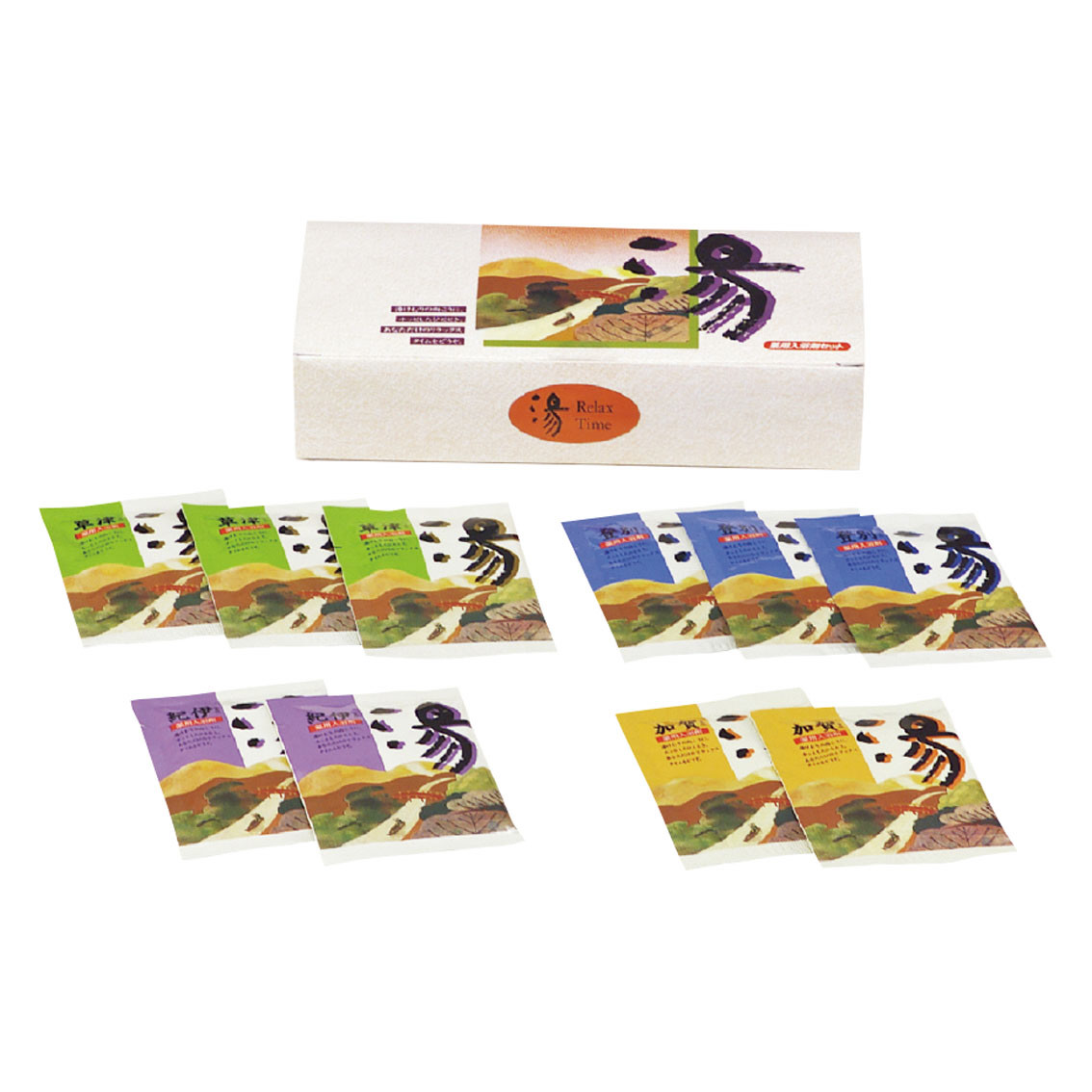 付属品、セット内容: 薬用入浴剤25g×10包(登別・草津各3、紀伊・加賀各2)