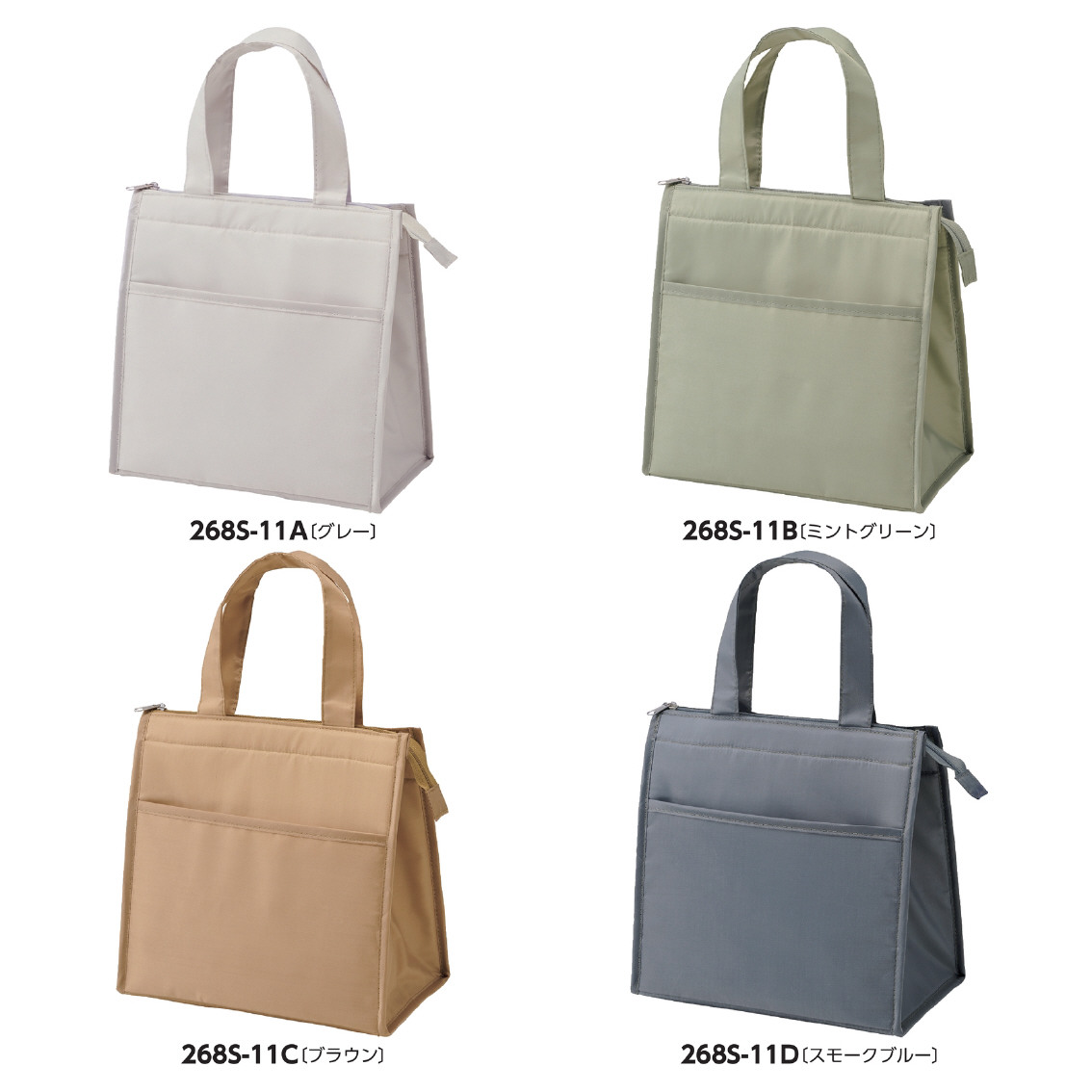 ランチボックスなどの持ち運びに最適な保冷温バッグ。おしゃれなくすみカラーの4色展開です。