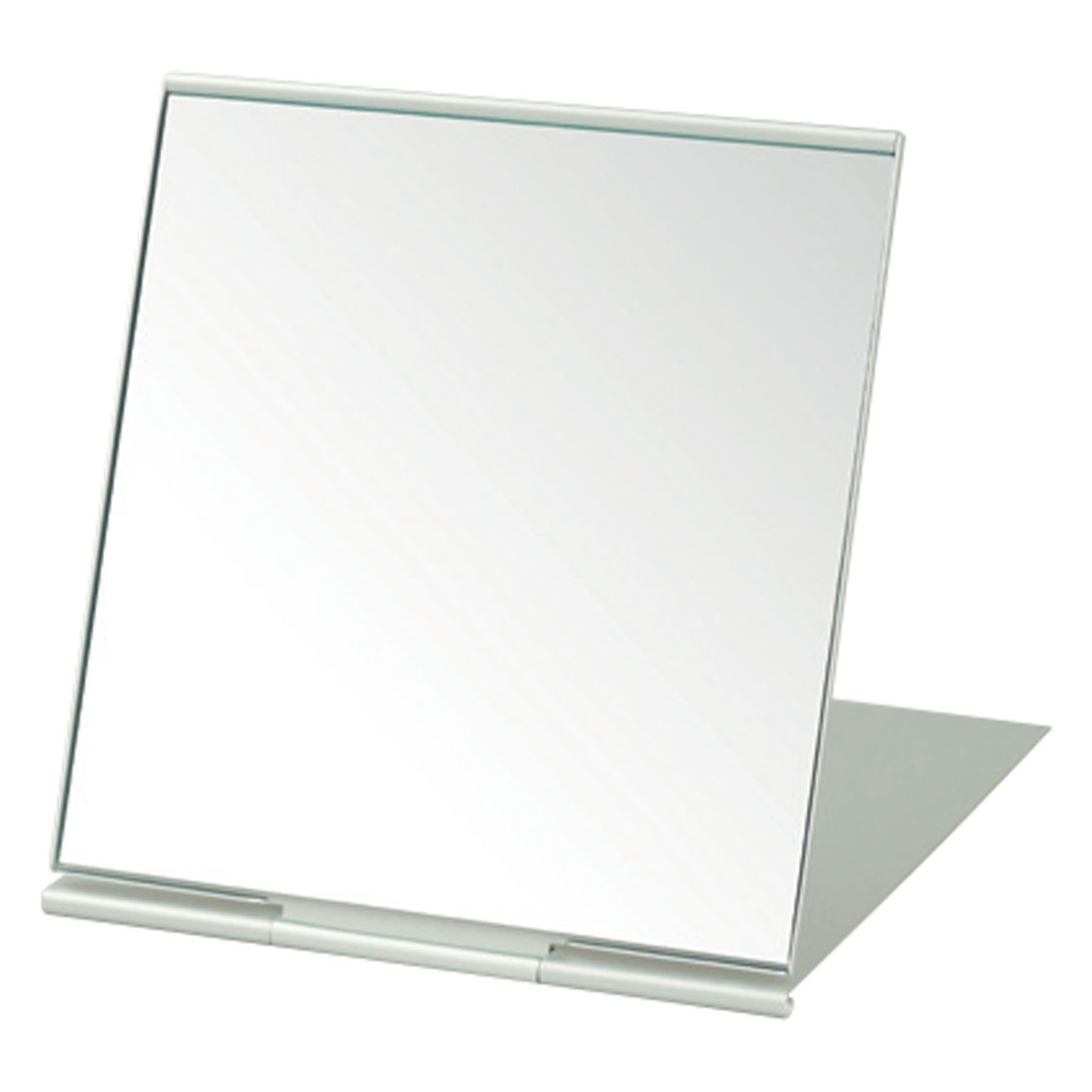 スタイリッシュなアルミ素材をフレームに使用したコンパクトミラー。フタを折り返してスタンドミラーとしても使えます。