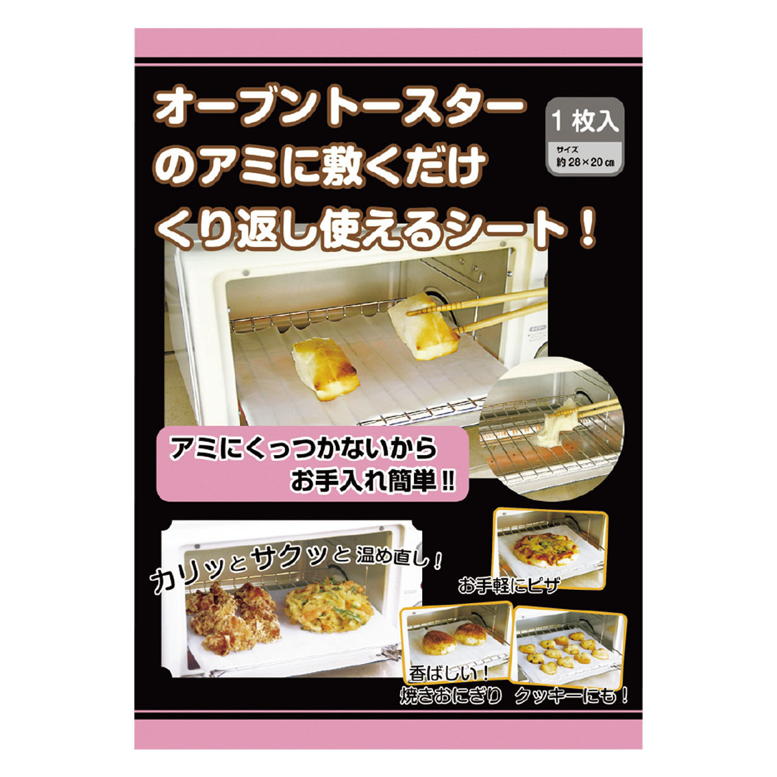 電気トースターを活用してお餅やピザを調理するのに便利な電気トースターシート。トースターのアミに食べ物の汚れが付着したり焦げ付いたりしませんので面倒なお手入れが不要です。