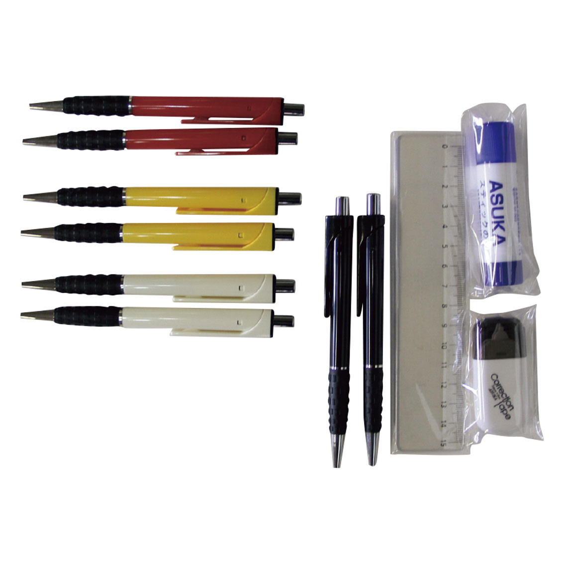 ボールシャープ、修正テープ、のり、定規セット