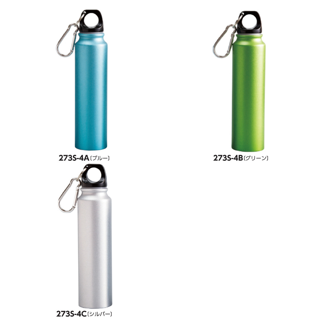 カバンの中で場所を取らないスリムなアルミボトル。携帯に便利なカラビナ付きです。