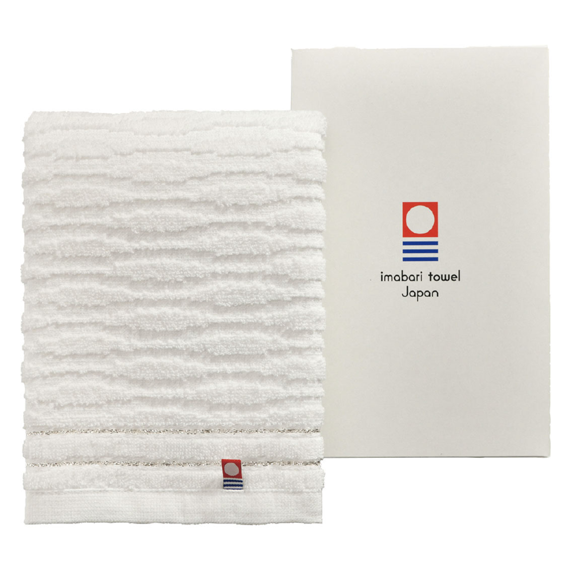 今治は、その古称の由来のように、豊かな水資源と奈良時代から築き上げた折りの技で世界でも有数のタオル産地となりました。今治の誇るジャガード織でその湧水や瀬戸内の白波の美しさを表現した1P化粧箱入れのタオルギフトです。