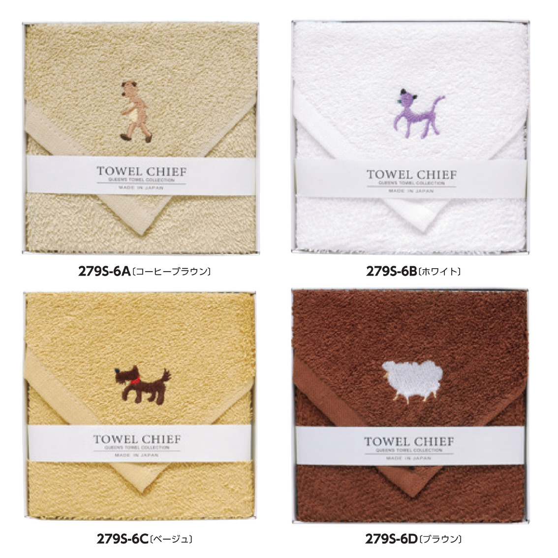 かわいい動物たちの刺しゅうをあしらったタオルハンカチギフトです。安心安全日本製で、大判サイズのタオルハンカチなので使い勝手も良くちょっとしたご挨拶ギフトとしてのほかプチギフトとしても最適です。メール便にも対応しています。