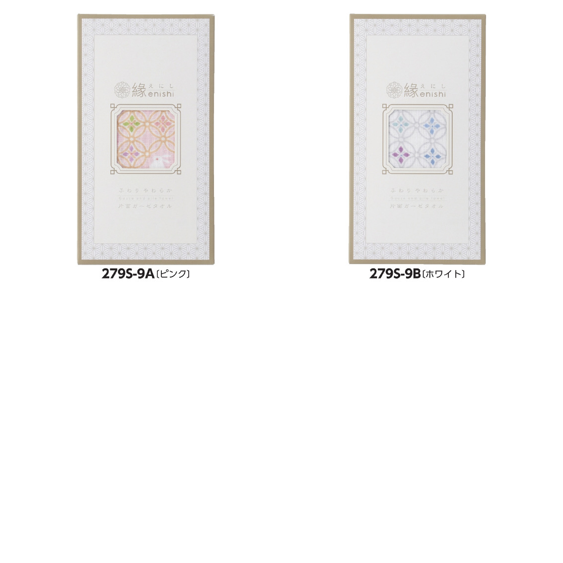 やわらかく肌触りの良い表ガーゼ・裏パイル素材のギフトセット。ピンク色は愛らしいウサギ&七宝紋をあしらい、ホワイト色はさわやかな色に七宝柄をあしらいまいた。メール便などでも贈りやすいコンパクトサイズです。
