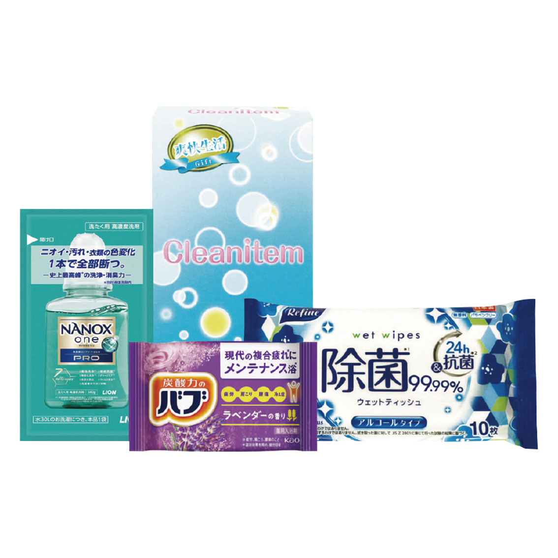 付属品、セット内容: ライオン NANOXonePRO1P・リファイン アルコール除菌ポケットウエットティッシュ10枚・花王バブ ラベンダー