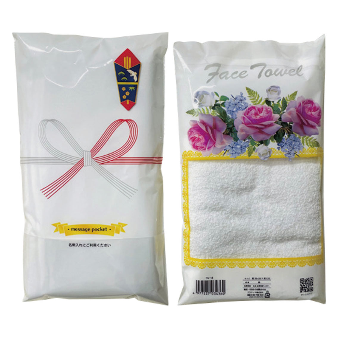 のしデザインのPP袋入りのフェイスタオルです。
