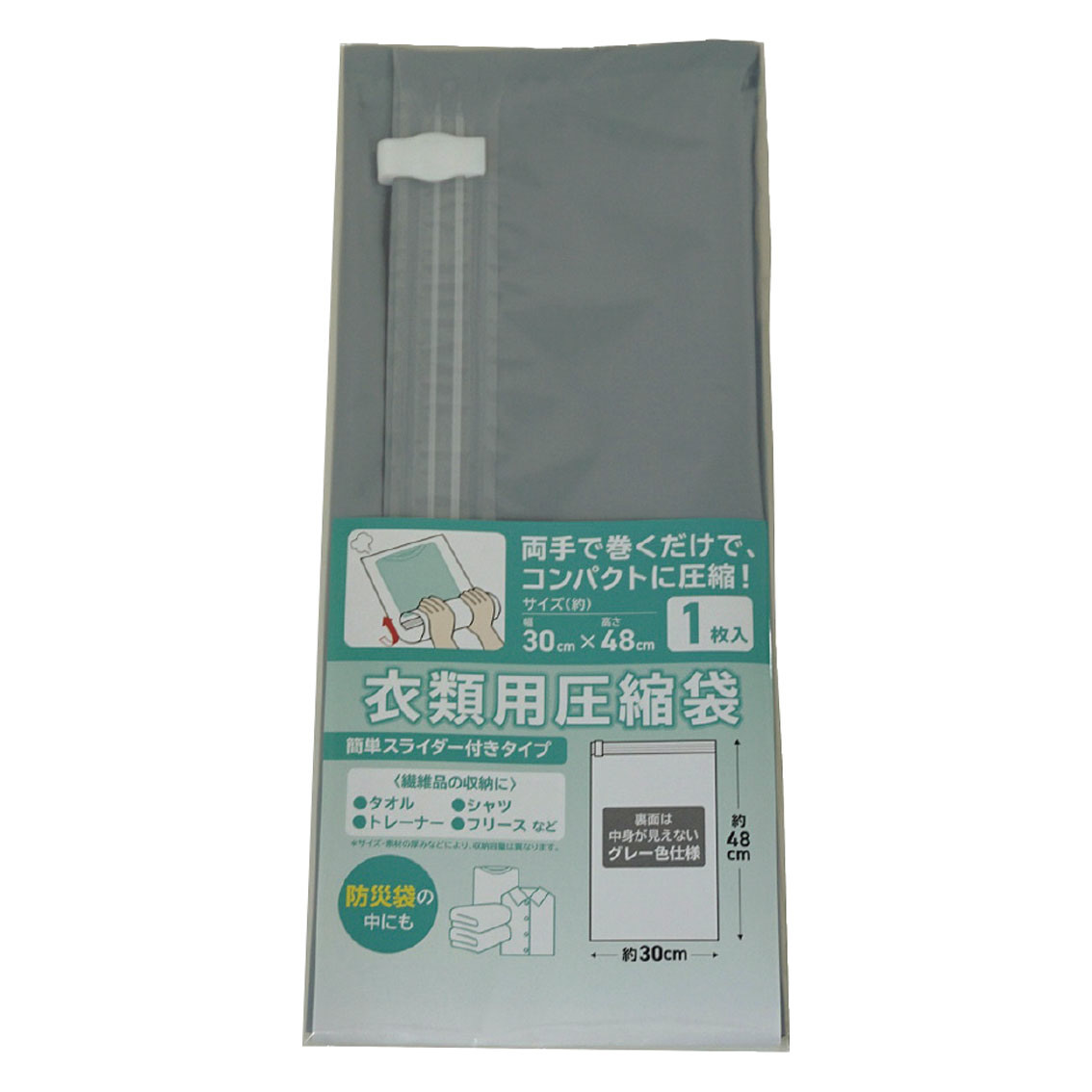 手押しでかさばる衣類を簡単に圧縮できます。スライダー付 片面は中身が見えない様グレー色 旅行・出張時や非常時の為に防災バッグに入れても場所を取りません。破損しにくい厚手(0.065mm)仕様
