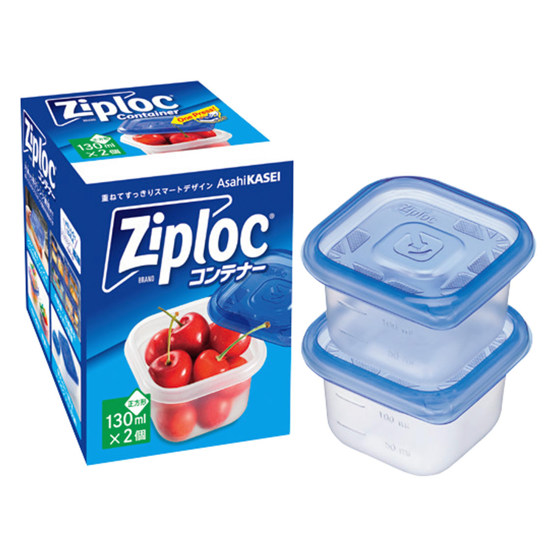 旭化成 ジップロックコンテナー正方形 130mL 2個入