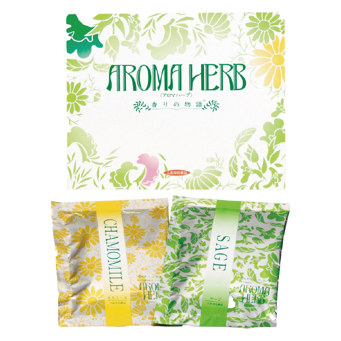 付属品、セット内容: ハーブエキス配合入浴料30g×2包(カモミール・セージ各1)