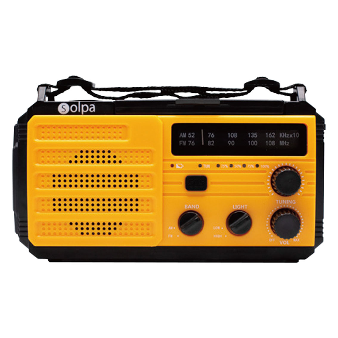 機能、性能: 蓄電池(容量8000mAh)・AM/FMラジオ(ワイドFM対応)・懐中電灯(調光3段階)・読書灯(調光2段階)・SOSアラーム・3WAY充電(手回し/ソーラー/USB)・イヤホン端子搭載