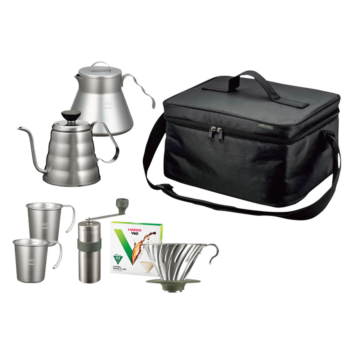 世界中で愛用されている円すい形「V60ドリッパー」シリーズのアウトドア仕様コーヒーセット。家でも外でも本格的なコーヒーがお愉しみいただけます。